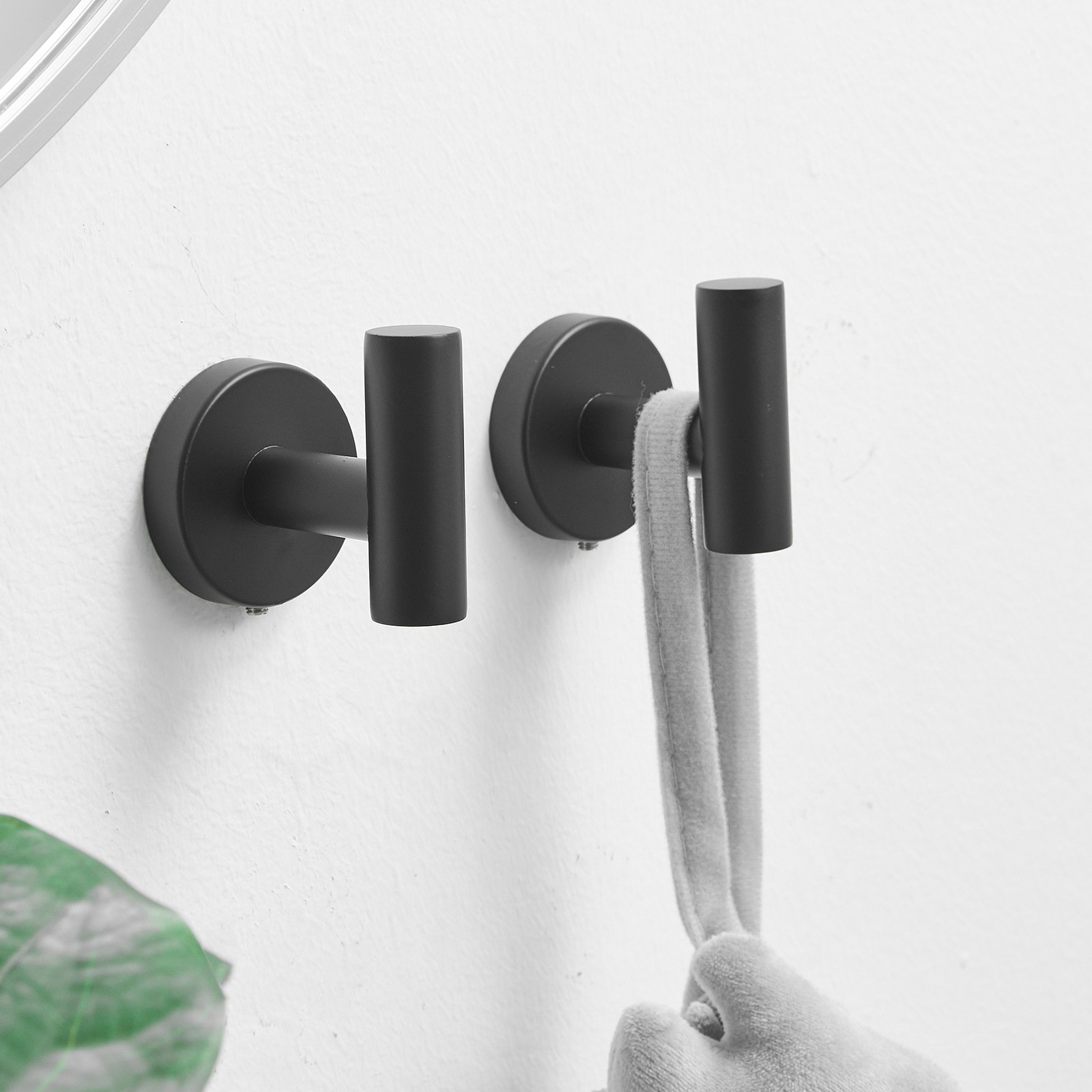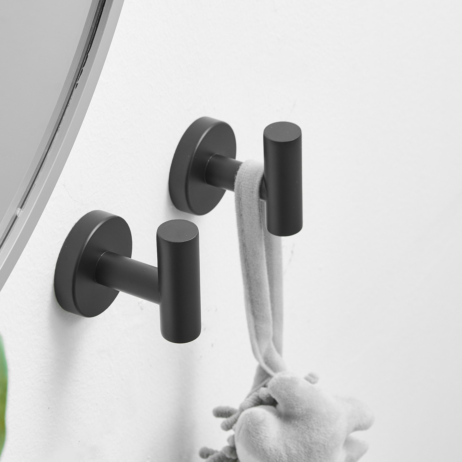 Round Bathroom Robe HookContains 2-piece towel hooks, more cost-effectiveStainless steel matte black decor and transitional stylesEasy to assemble and hang,complete with all brackets and hardware