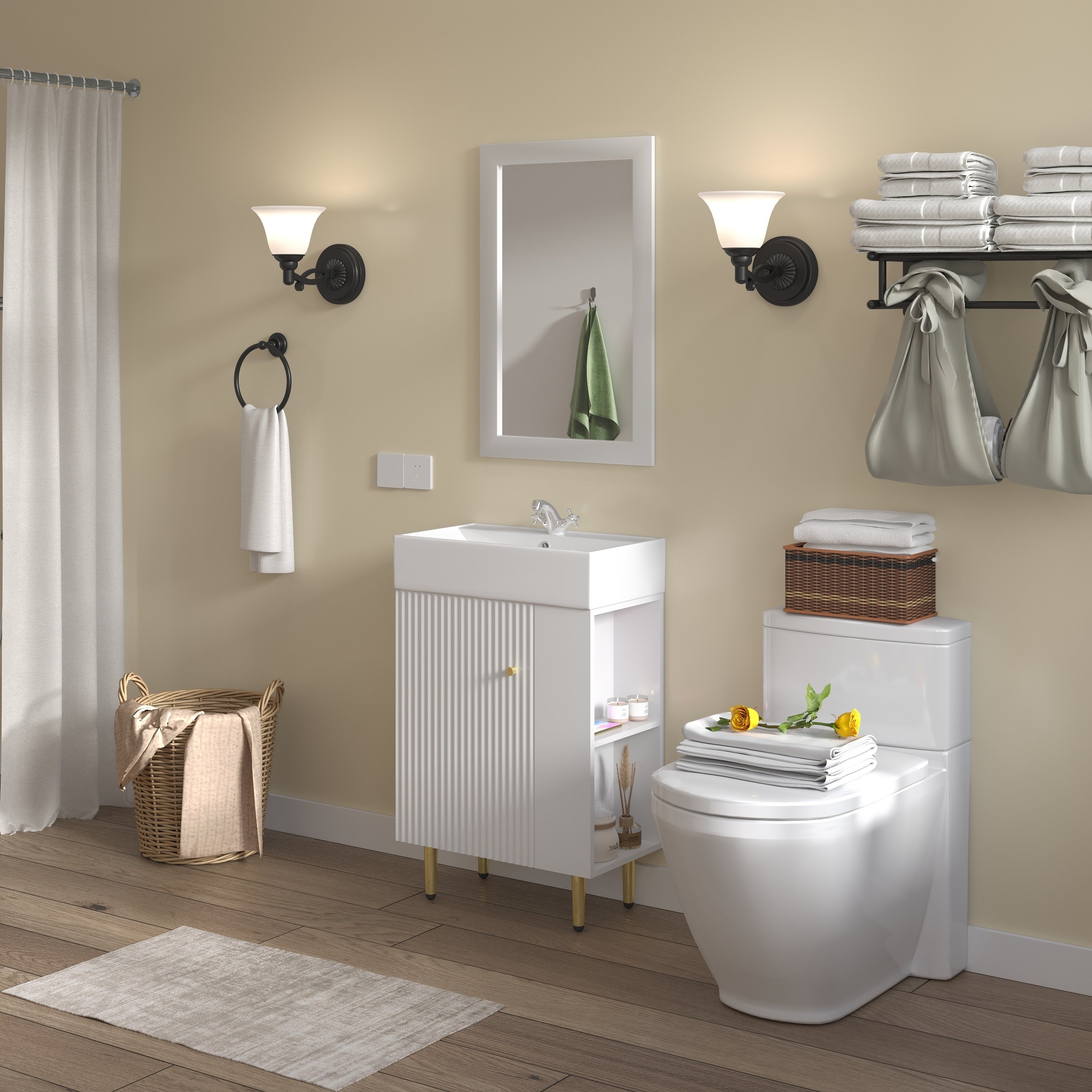 Ample Storage Space: Underneath the ceramic sink, a soft-closing door cabinet offers concealed storage space, while open-side cabinets offer convenient access to often-used items and make a small bathroom feel more spacious. This vanity is designed with your storage needs in mind, ensuring a clutter-free bathroom.