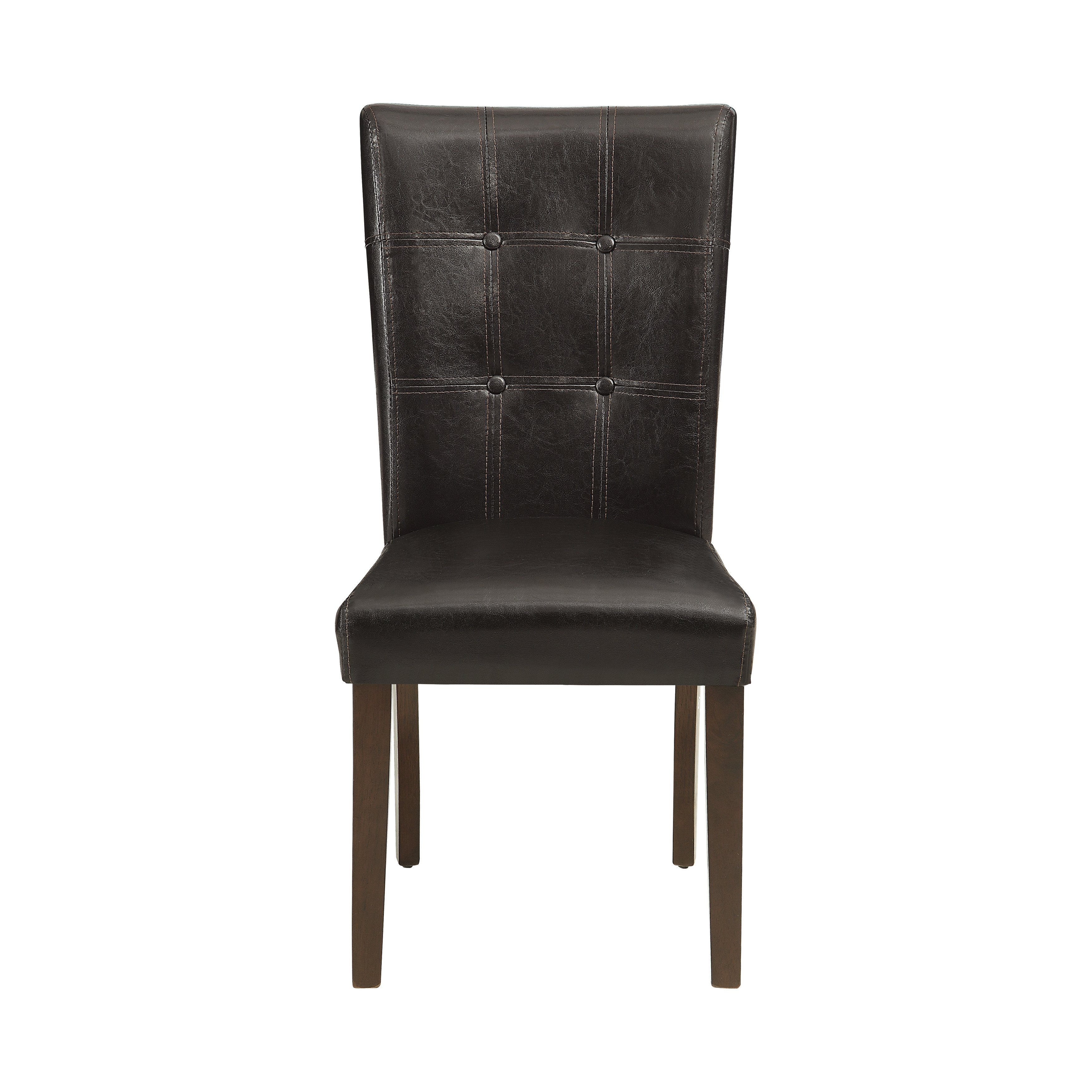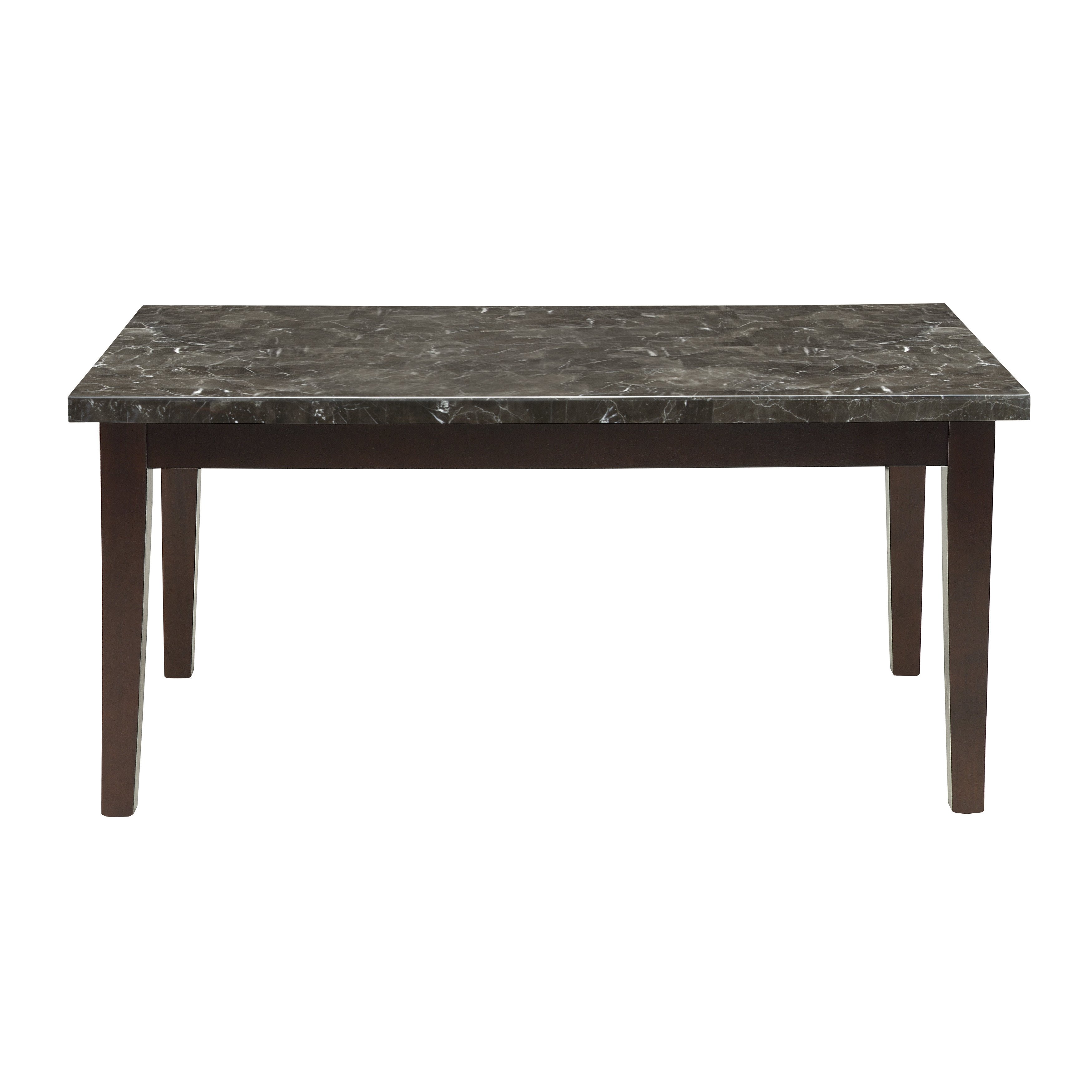 The casual Decatur Collection is the transitional style that you have been searching for in your dining space. Wood legs in dark cherry finish support both the black marble table top and chair seats. Covered in dark brown faux leather, the tufted accenting on the chair and bench lend not only to the design but also to your comfort, when you sit with family and friends over a casual meal.PRODUCT DIMENSIONS: Overall Dimension: 38" x 64" x 30"HApron to floor: 24.5"Distance between legs from the shorter side: 28.25"Distance between legs from the longer side: 54.25"SIDE CHAIR: 19" x 25" x 38.5"HSeat Width: 19"Seat Depth: 17.5"Seat Height: 19"Listing Includes: 5pc Dining Set (1 Dining Table and 4 Side Chairs) Only.Simple Assembly Require.